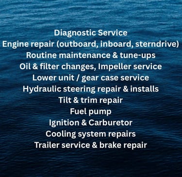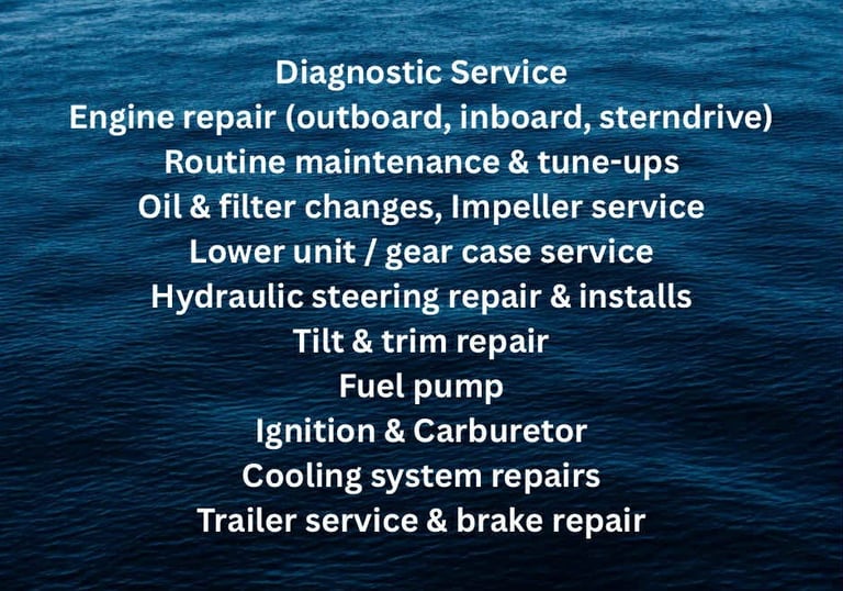 At M Marine Sales & Service, we specialize in keeping your boat running strong and lake-ready all season long. With 30 years of experience, we provide professional diagnostics, outboard and inboard repairs, tune-ups, winterization and dewinterization, hydraulic steering work, electrical troubleshooting, water pump and impeller service, tilt-and-trim repairs, and routine maintenance. Whether it’s performance issues, starting problems, steering concerns, or seasonal prep, we get you back on the water quickly and safely with quality workmanship you can trust.
